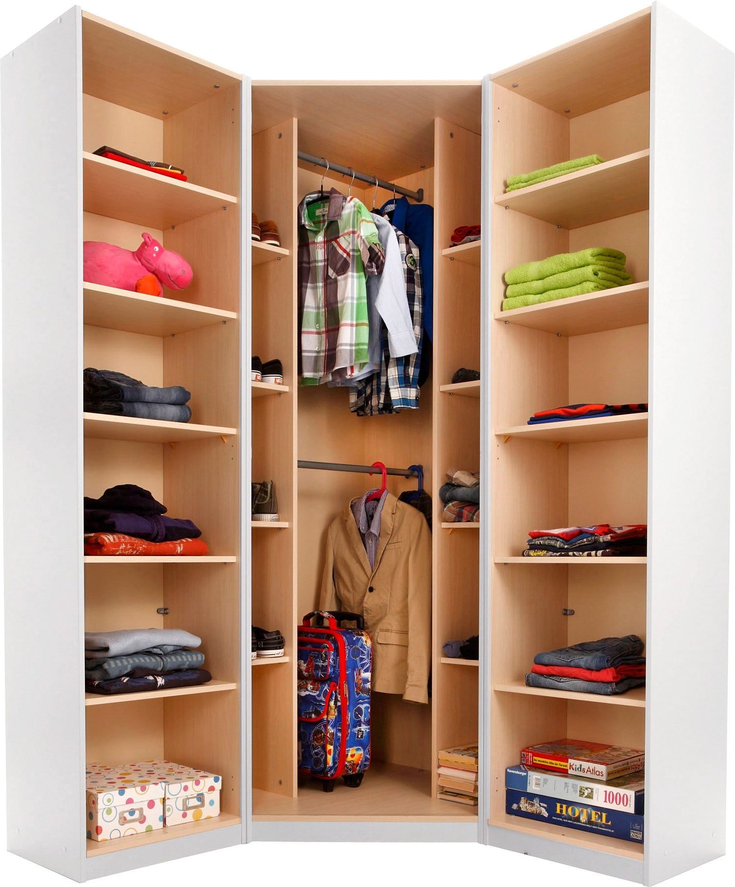 Individuell ausstattbarer eckkleiderschrank mit glasfronten in magnolie, beleuchtung optional. Oder sie setzen auf einen platzsparenden eckkleiderschrank in wandfarbe, der sich harmonisch in ihr ambiente einfügt. Bist du auf der suche nach günstigen kleiderschränken? Eckkleiderschrank zoom zm01, eckschrank, schrank, begehbarer kleiderschrank mit kleiderstange, einlegeboden, schubladen und beleuchtung, jugendzimmerschrank mit 2 türen. Rauch blue eckkleiderschrank »nidda« mit spiegelfront.